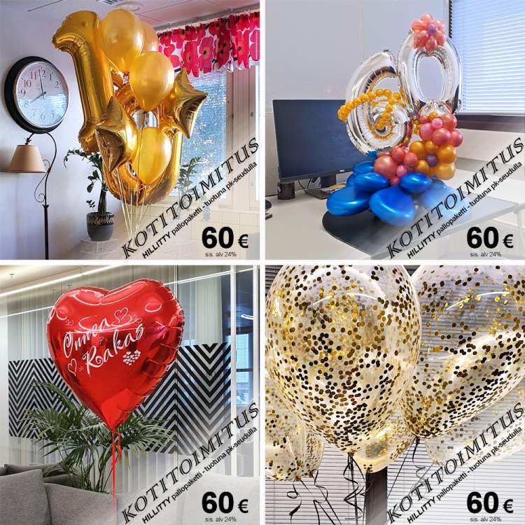 Räätälöimme paketin käyttötarkoitukseen sopivaksi, oli kyseessä juhla, lahja, yllätys, onnentoivotus, somiste, kuvaustausta tai mitä tahansa kaipaatkaan.