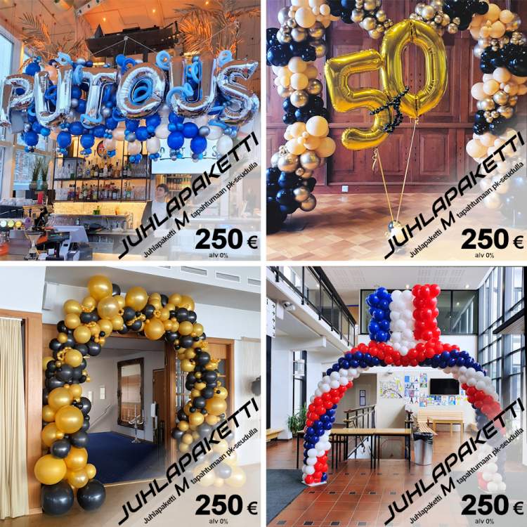 Ei hätää, tällaisia tilanteita varten olemme luoneet kolme juhlapakettia: S, M ja L