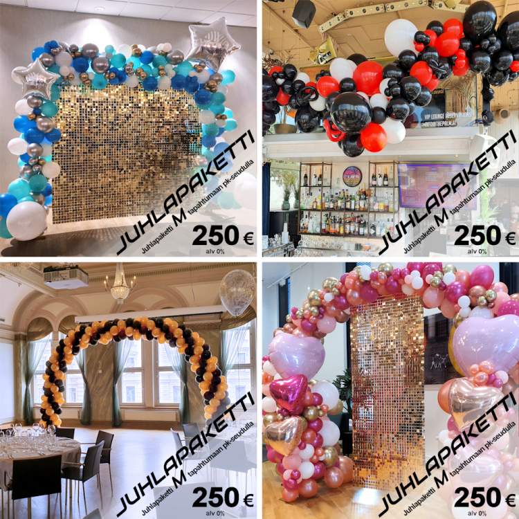 Mainitut pakettihinnat koskevat tilaisuuksia pk-seudulla ja sisältävät kuljetusta myöten kaiken muun paitsi arvonlisäveron (24%),